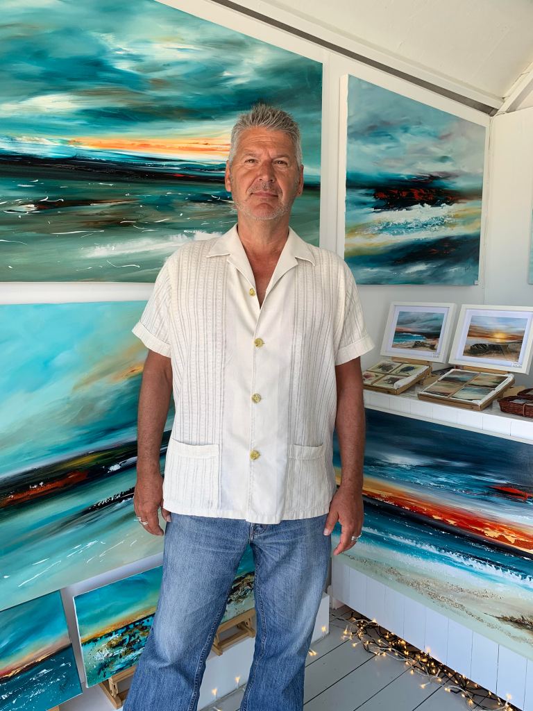 I relay my emotions and experiences on to canvas with a rhythmic and energetic yet serene and delicate manner, exploring and experimenting with texture and media creating a contemporary and abstract representation of seascapes and endless horizons. Going beyond mere nostalgia but encouraging the viewer to share the sentiment and theme of the painting while allowing them to create their own level of intimacy with the image according to their emotions and memories.